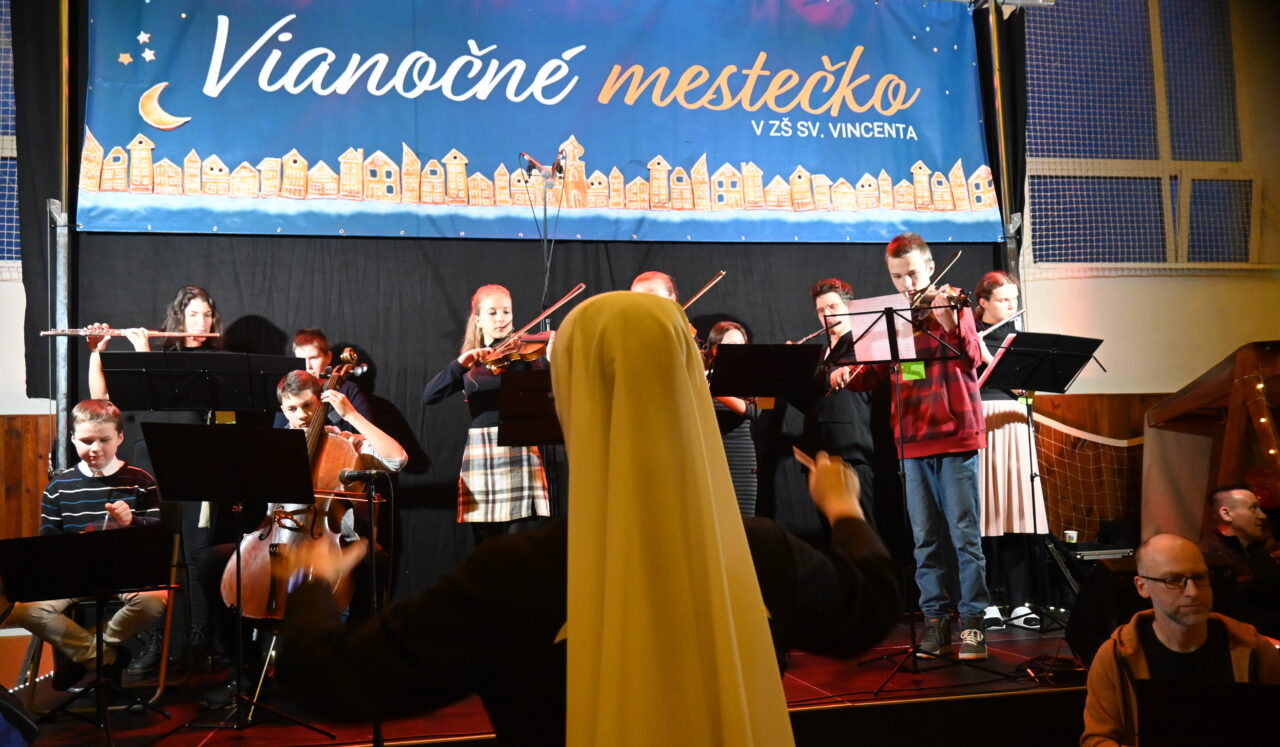 Podujatie Vianočné mestečko je príležitosťou na stretávanie sa, ale predovšetkým o navodenie predvianočnej atmosféry. K nej prispeli nielen stánky v ktorých ponúkali rôzne ozdoby na stromček, medovníčky, vianočné oblátky, zákusky a cukrovinky. K adventu prináležia aj vianočné piesne a koledy, ktoré si pripravil pre návštevníkov podujatia školský orchester pod vedením rehoľnej sestry Terezy.