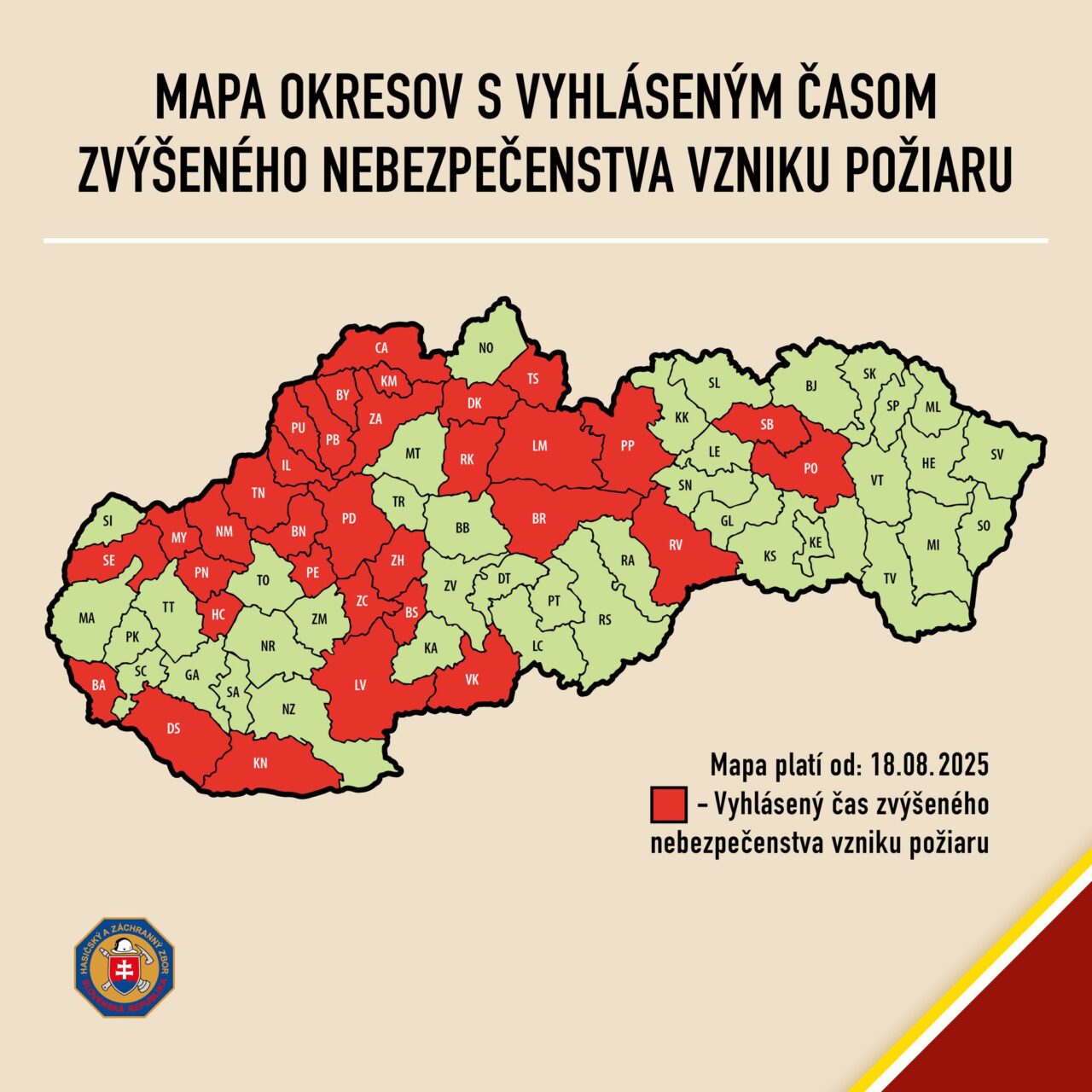Od 18. augusta vyhlásilo Okresné riaditeľstvo Hasičského a Záchranného zboru v Ružomberku čas zvýšeného nebezpečenstva vzniku požiaru. Tento stav si vyžaduje sprísnené dodržiavanie pravidiel protipožiarnej ochrany nielen v lesoch, ale aj v ich blízkom okolí.