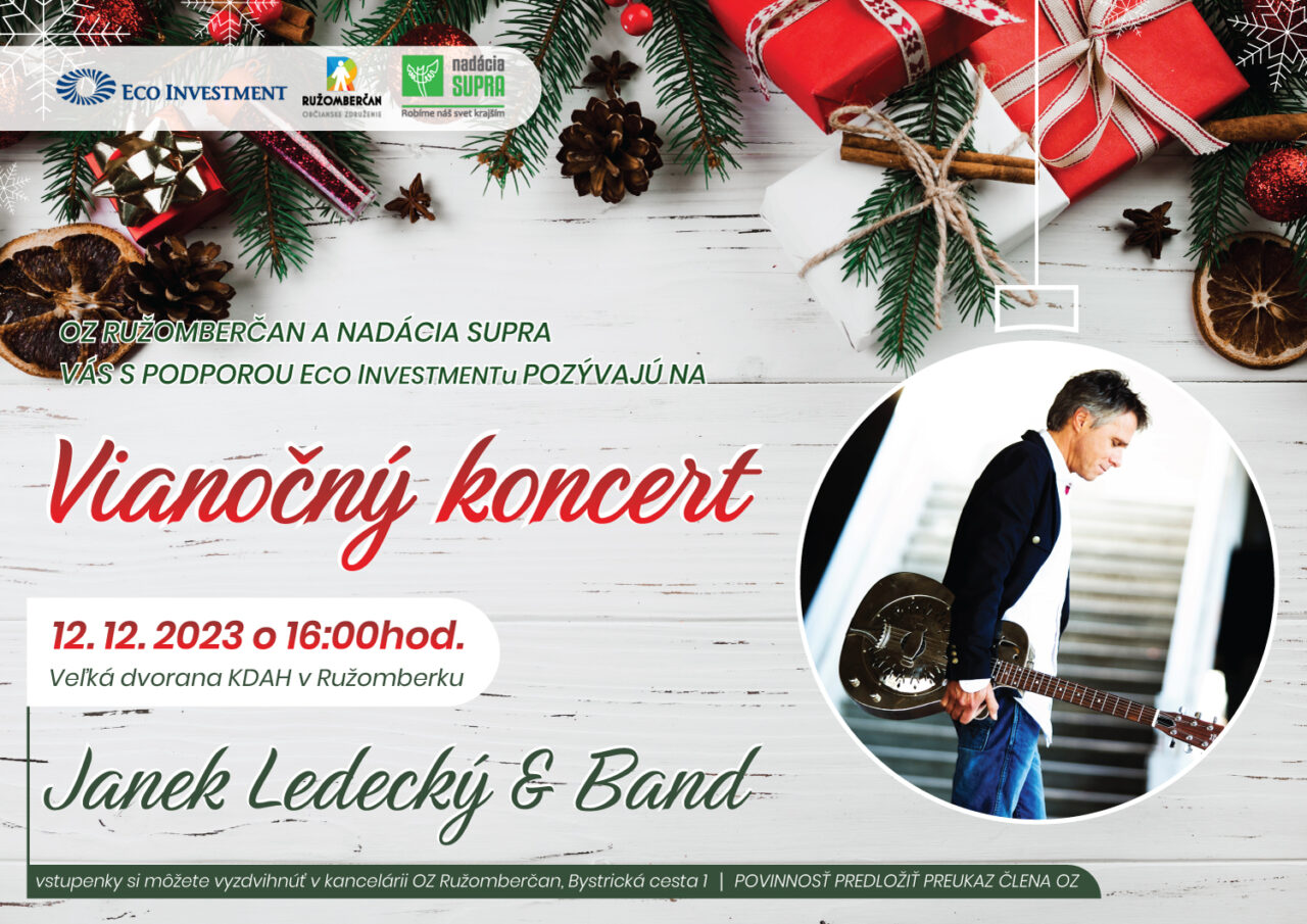 Vianočný koncert Janek Ledecký & Band, sa uskutoční 12.12. 2023 o 16.00 hod. v KDAH Ružomberok. S Jankom Ledeckým si členovia OZ Ružomberčan budú môcť zaspievať vianočné pesničky Záři hviezda záři, Dopis Ježiškovi, Veselí o Vánocích, ale aj Pěkná, pěkná, pěkná.