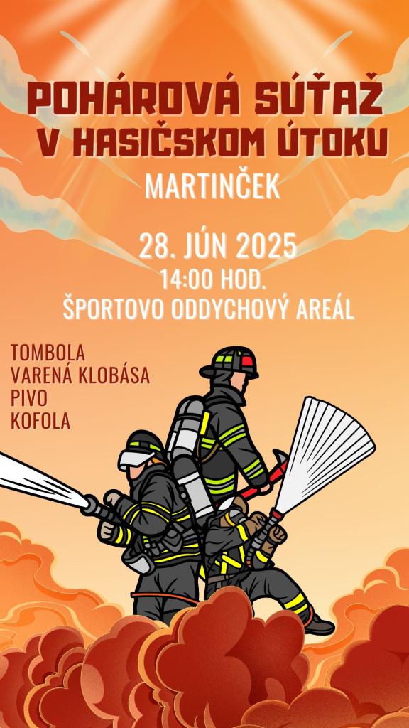 Dobrovoľný hasičský zbor Martinček Vás pozýva na pohárovú súťaž v hasičskom útoku.
