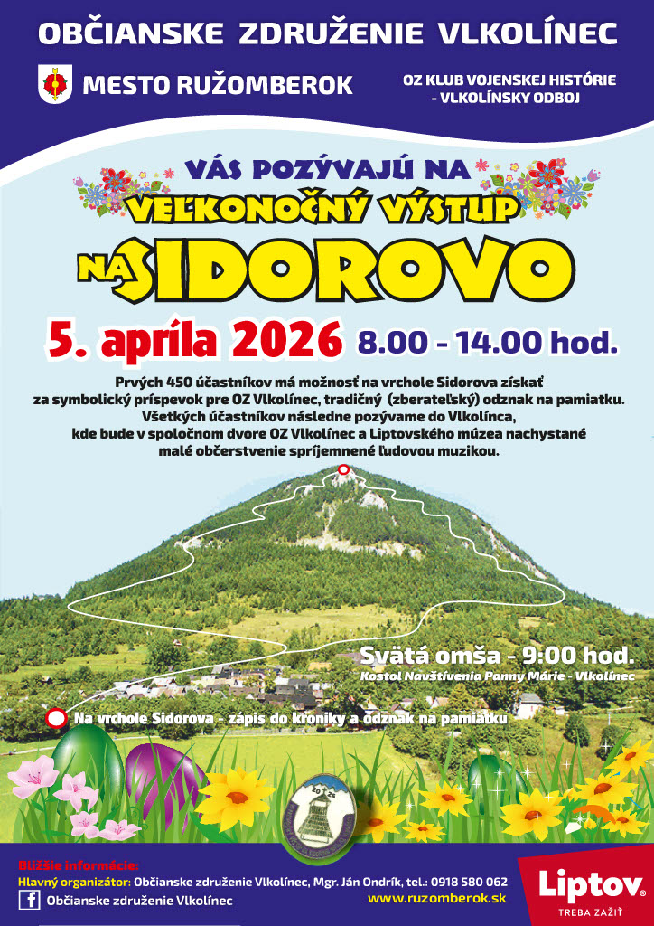 Na Veľkonočnú nedeľu 5. apríla Občianske združenie Vlkolínec v spolupráci s mestom Ružomberok a Občianskym združením Klub vojenskej histórie chystá 27. ročník Veľkonočného výstupu na Sidorovo.