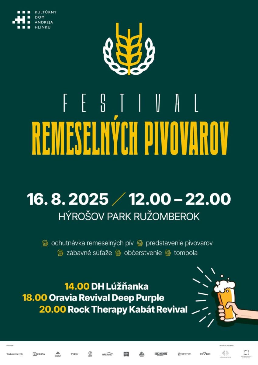Už druhýkrát sa v Ružomberku stretnú milovníci remeselného piva, dobrej muziky a letnej atmosféry. Tešia sa na vás skvelé remeselné pivovary, ktoré vám načapujú to najlepšie zo svojich pivných pokladov. Chýbať nebude ani chutné občerstvenie – pripravené budú stánky s jedlom, aby ste nezostali len pri pive. Tešiť sa môžete aj na zábavné súťaže a tombolu.