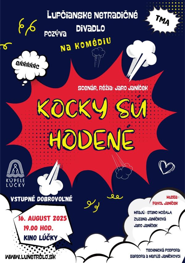 Kúpele Lúčky vás pozývajú na komediálne divadelné predstavenie Ľupčianskeho netradičného divadla s názvom Kocky sú hodené.