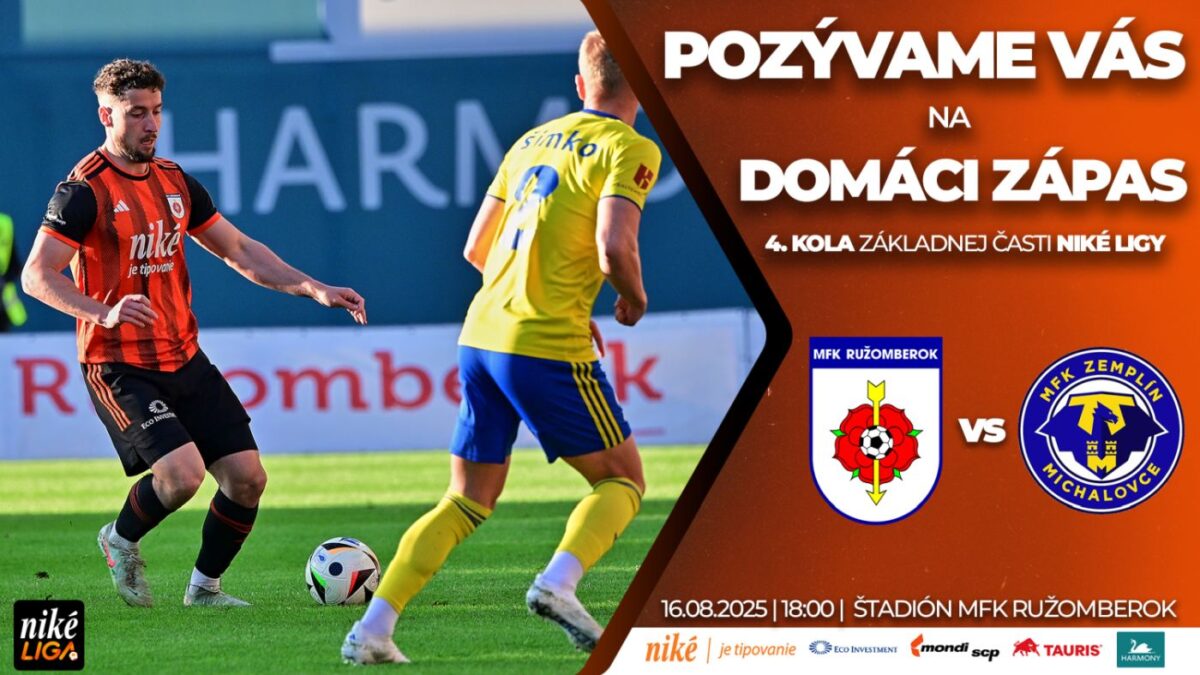 MFK Ružomberok vás pozýva na domáci zápas 4. kola základnej časti futbalovej Niké ligy MFK Ružomberok – Zemplín Michalovce.
