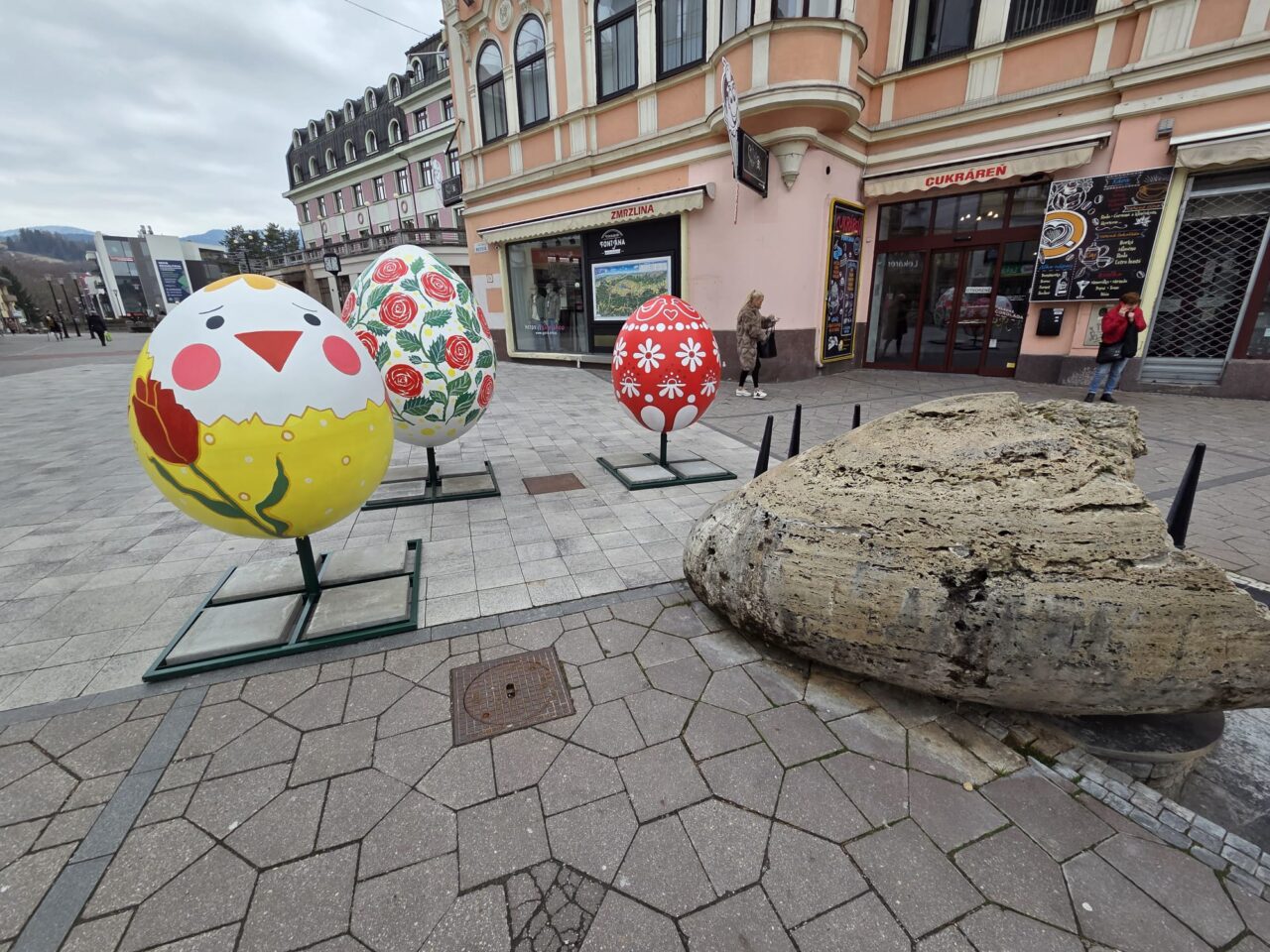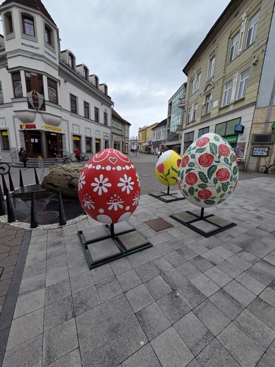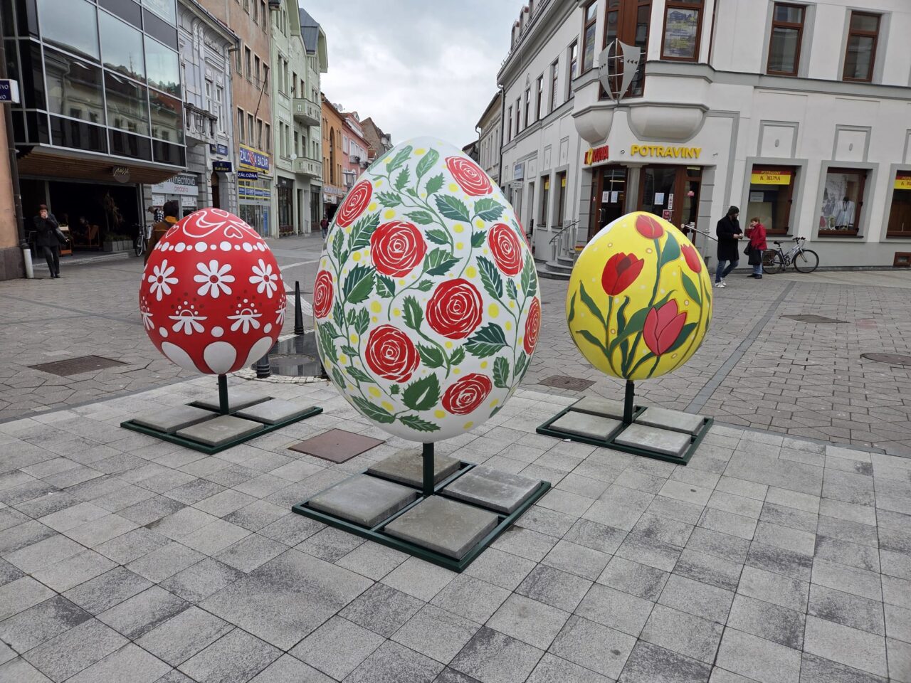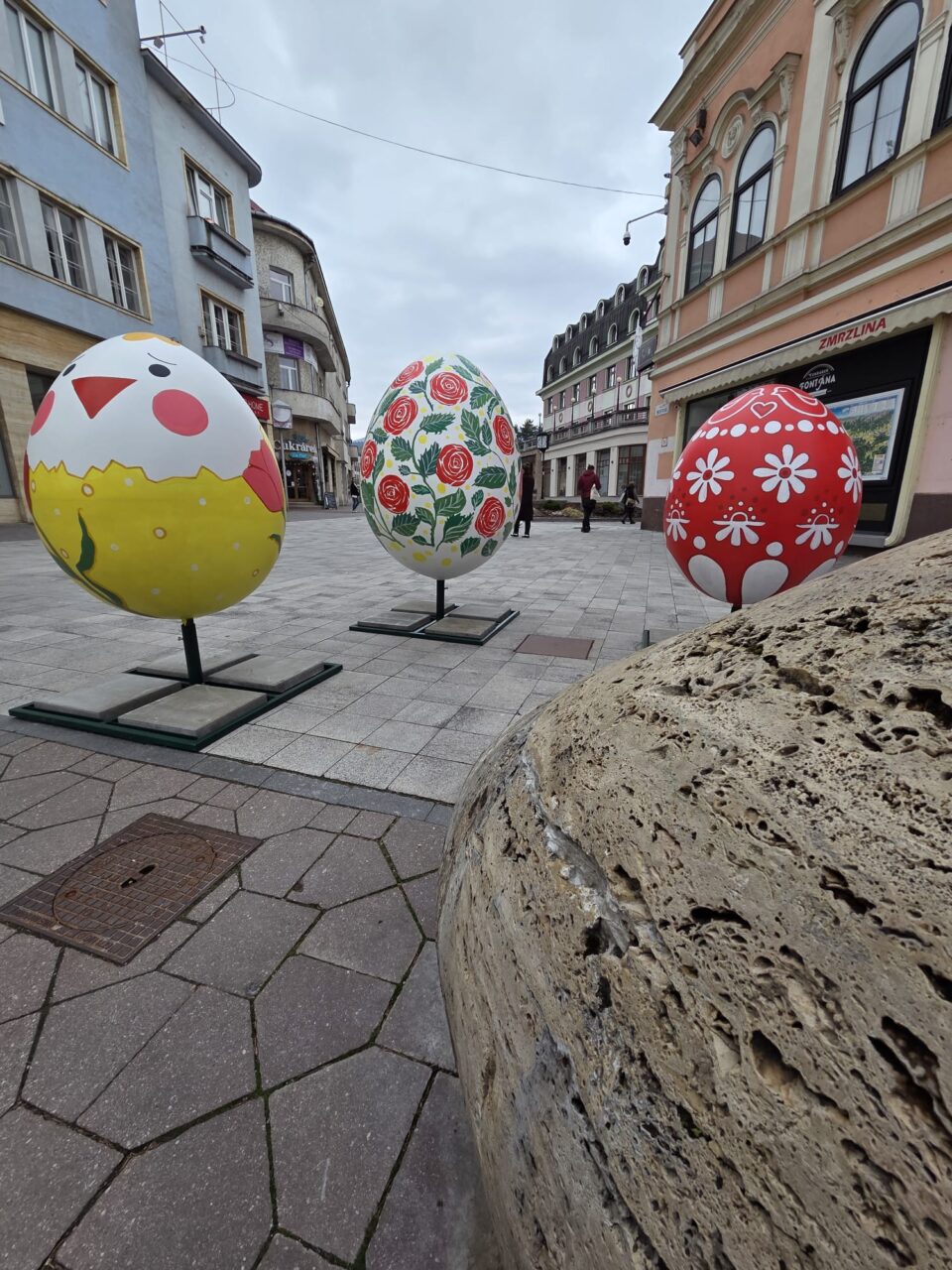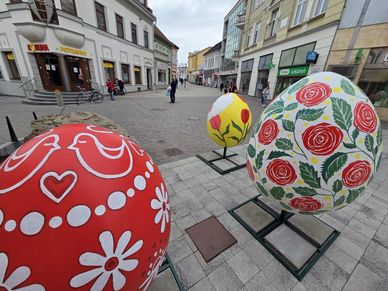 Žiaci Základnej umeleckej školy Ľudovíta Fullu vymaľovali veľké vajíčka, ktoré robia radosť okoloidúcim a spríjemňujú atmosféru mesta.