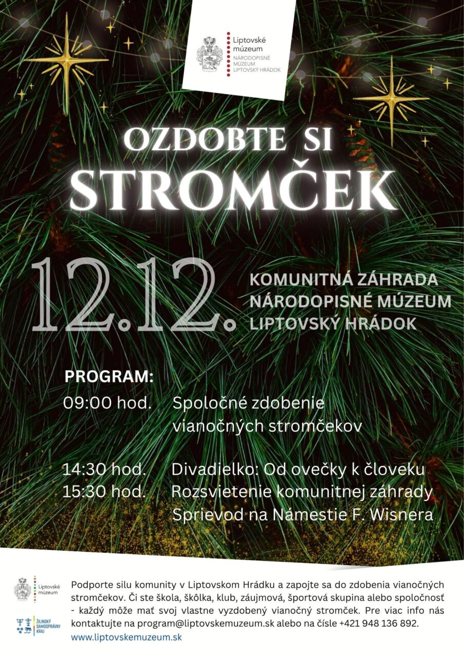 „Vďaka našim partnerom zabezpečíme stromčeky pre všetkých záujemcov. Svojimi vianočnými dekoráciami,“ uviedla vedúca oddelenia programov a marketingu Liptovského múzea Silvia Vančová. „Chceme sa s rokom 2025 rozlúčiť dôstojne a v našej záhrade vytvoriť chvíľu, ktorá ľudí zblíži. Veríme, že aj malý spoločný okamih, akým je prosté zdobenie vianočných stromčekov, môže prerásť do silnej a hodnotnej spomienky,“