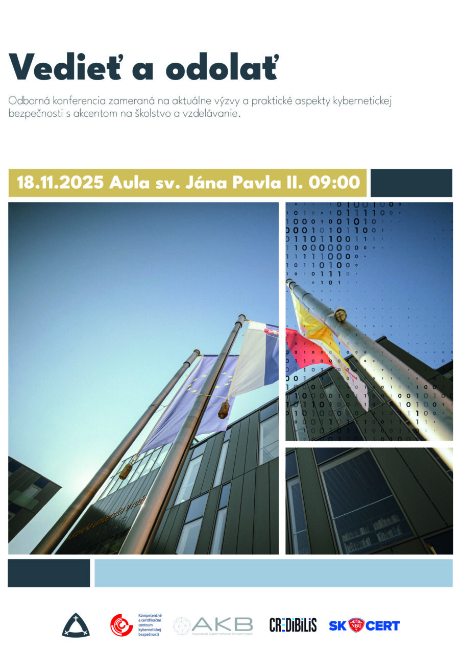 Po Týždni vedy a techniky a štátnom sviatku Dňa boja za slobodu a demokraciu (17. november), na ktorý škola vyhlásila rektorské voľno, sa 18. novembra na Katolíckej univerzite v Ružomberku uskutoční ďalšie významné podujatie – odborná konferencia o kybernetickej bezpečnosti s dôrazom na školstvo a vzdelávanie a názvom Vedieť odolať.