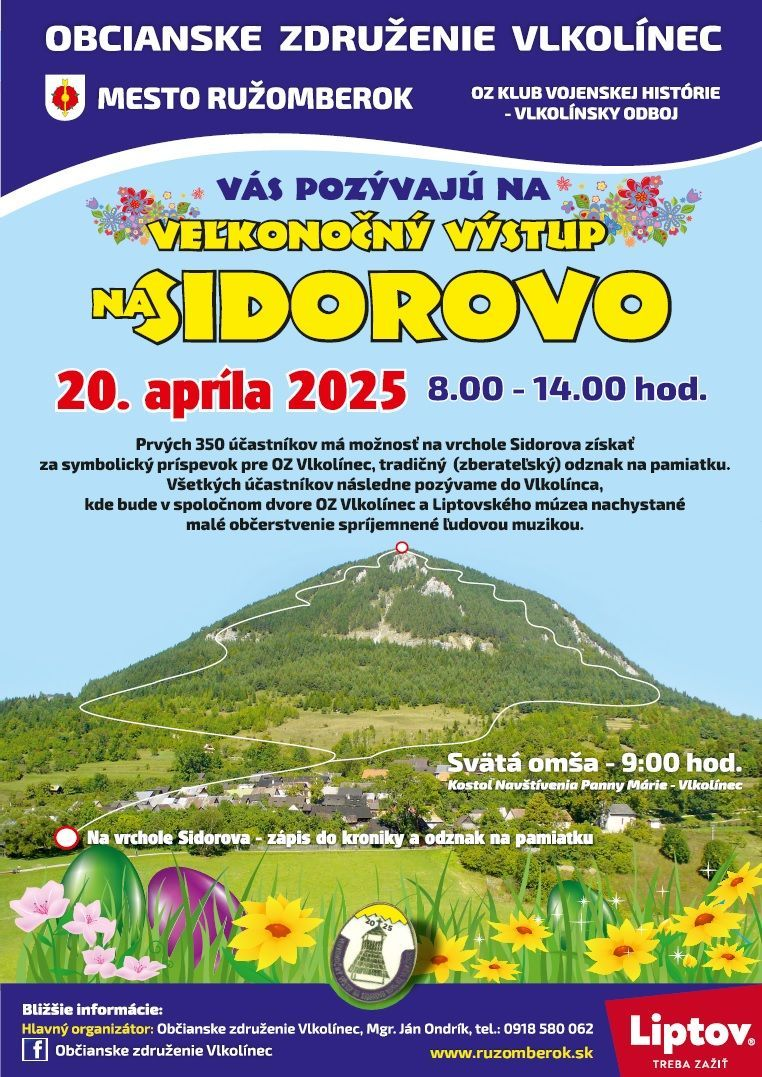Veľkonočný výstup na Sidorovo má už svoje pevné miesto v turistickom „sviatočnom“ kalendári. V nedeľu (20. apríla) táto vábnička, v ktorej organizátorskom záhlaví trónia Občianske združenie Vlkolínec, Občianske združenie Klub vojenskej histórie – Vlkolínsky odboj a Mesto Ružomberok, napíše svoj oficiálne 26. ročník a keď na túto úctyhodnú reťaz pridáme aj nulté ohnivko, tak je to dvadsiata siedma kapitola.