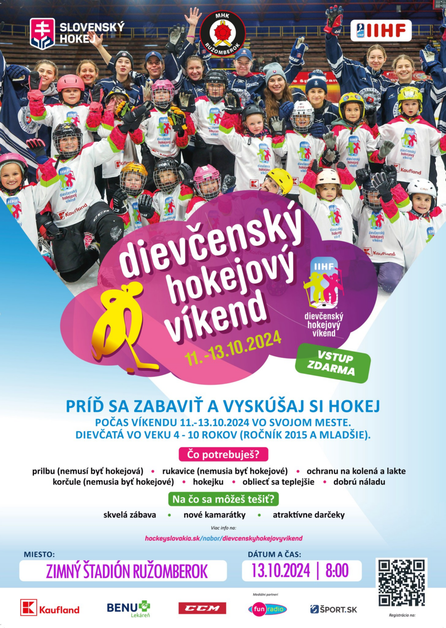 V nedeľu (13. októbra) Dievčenský hokejový víkend zavíta aj na zimný štadión v Ružomberku. Nadnárodný náborový formát, určený pre „decká“ od štyroch do desať rokov, sa v centre dolného Liptova uskutoční od 8:00 do 9:00 hod.