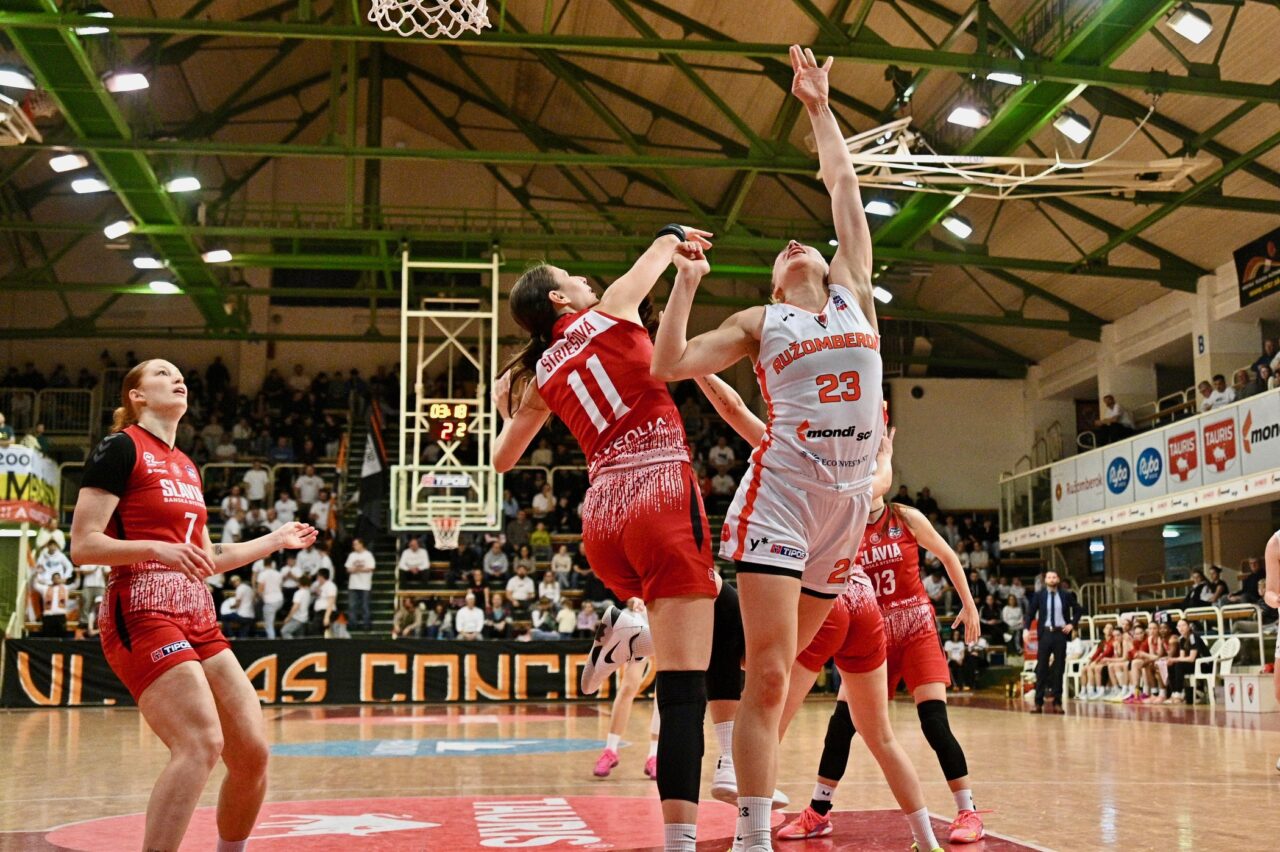 Body MBK: Smithová 19, Jackovecová 16, Andělová 16/3 trojky, Kraislová 8, Živaljevičová, Šedivá a Štefančová po 5, Kaliuzhna 3 – najviac bodov Slávia: McGruderová 16, Urbanová 13/3 trojky, Chovaníková 12/4 trojky.