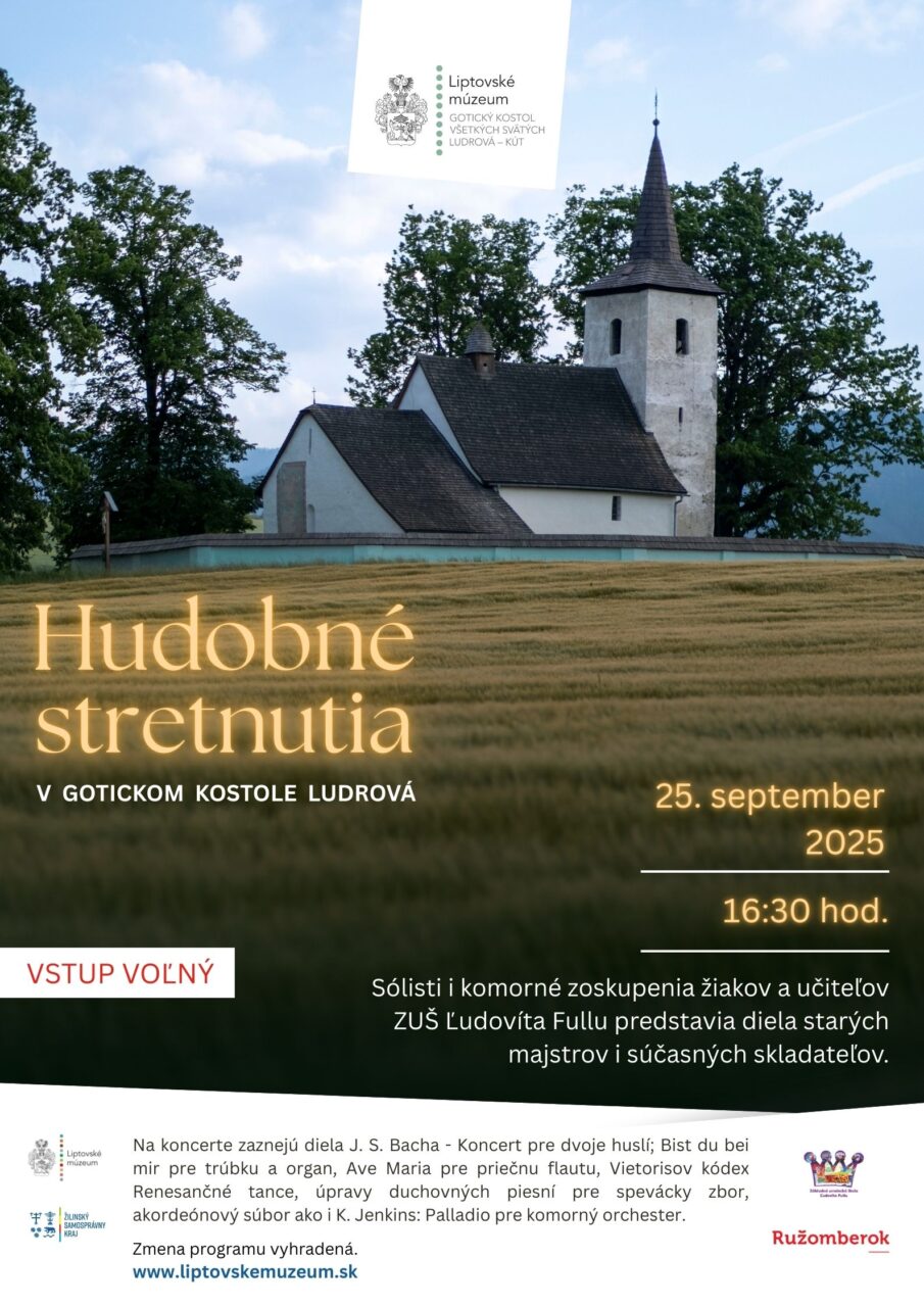 Hudobné stretnutia. Pod týmto názvom sa vo štvrtok (25. septembra) uskutoční v Kostole Všetkých svätých v Ludrovej koncert žiakov a učiteľov Základnej umeleckej školy Ľudovíta Fullu v Ružomberku.