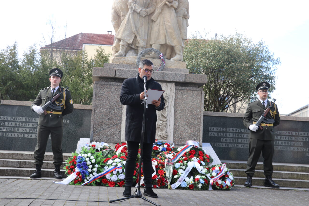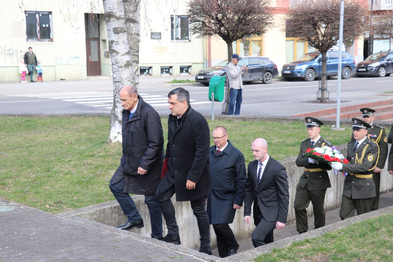 Po štátnej hymne, ktorú zahrala Vojenská hudba z Banskej Bystrice, nasledoval akt kladenia vencov.