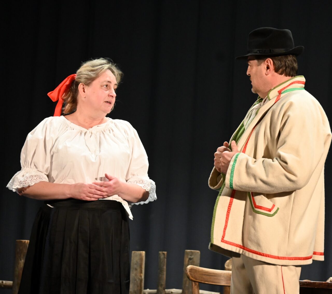 Na javisku sa predstavili Vladko Klopta, Ľubka Senková, Peťo Brtko, Janka Horváthová, Tánička Ševčíková, Janko Brtko, Filip Kereškéni a Mirka Raksová. Každý z nich prispel svojím výkonom k autentickej atmosfére predstavenia a presvedčivo stvárnil postavy z dedinského života.