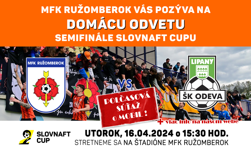 Zajtra (16. apríla) sa črtá ďalší významný deň v histórii "koženej" pod Čebraťom. Ružomberské mužstvo, po jasnom víťazstve v Lipanoch (5:0), potrebuje spraviť už len malý krôčik, aby bolo z toho piate finále Slovenského pohára v dejinách klubu, ktorý si o dva roky pripomenie jubilejnú sto dvadsiatku.