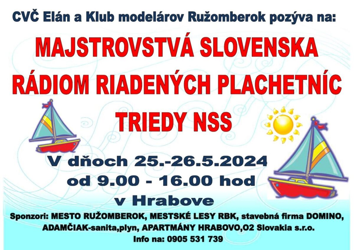 Na priehradnej nádrži v Hrabove sa v sobotu a v nedeľu (25. a 26. mája) uskutočnia otvorené majstrovstvá Slovenska rádiom riadených plachetníc triedy NSS.