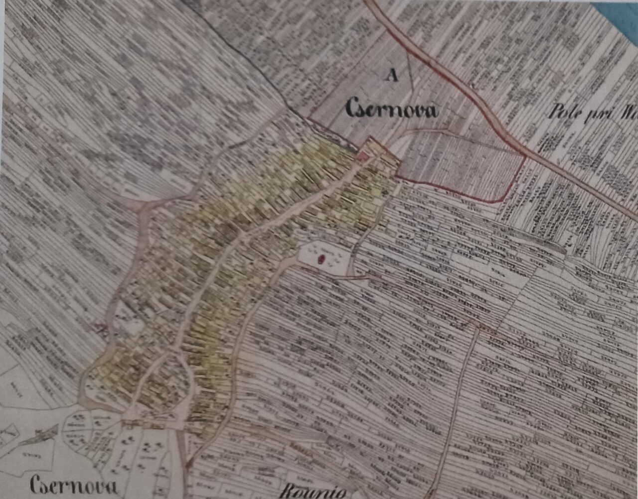 Černová, 1461 – Crnaw, 1882 – Csernova, 1808 – Cžernowa